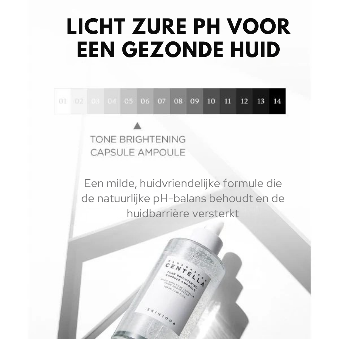 - Belangrijke ingrediënten: Brightening-capsules, Centella Asiatica, Madecassoside, Niacinamide