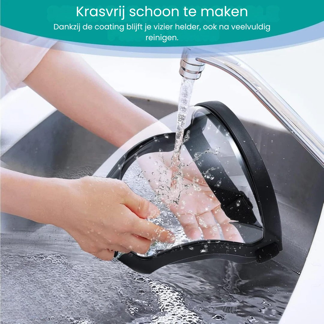 Met FaceShield krijg je een wrap-around bescherming met kraakhelder zicht. Het vol-visor ontwerp en de comfortabele hoofdband maken het de ideale keuze voor dagelijkse taken, drukke werkplekken of overal waar je je gezicht veilig wilt houden zonder concessies.